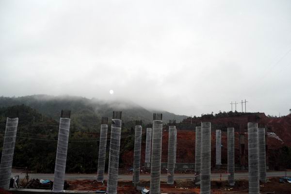 大广B1标盘石分离立交桥墩柱浇筑全部完成 发布时间:2011年03月25日 来源:大广B1标 发布人: 作者:蒋诗军 浏览:3594次 3月19日,大广B1标盘石分离立交桥施工区域雨雾交织,但施工现场却是热火朝天。随着3#-4、3#-5桥墩立柱的浇筑完毕,大广B1标盘石分离立交桥墩柱浇筑任务全部完成。 盘石分离立交桥横跨省道龙小线,并且2#、3#墩又临近道路,施工难度较大,但在项目部科学合理的安排调度下,墩柱施工有序开展,并顺利完成。