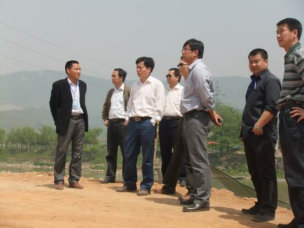 何局长首先来到我部北山河大桥施工现场,观看主桥11#墩部位插板桩完成后的主墩承台开挖情况及引桥桩基的施工情况。在听完项目经理冷峰对当前大桥施工的系统介绍后,何局长对我部大桥施工的质量控制及安全管理提出了具体要求。