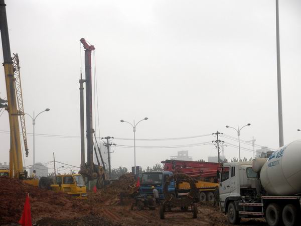 目前,项目部已具备办公条件,主要管理人员已基本到位,道排、桥梁、桩基、挡墙等施工队伍已进场施工,并于