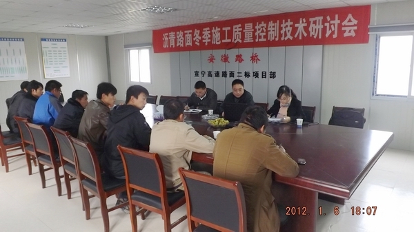 会上,曹祝林针对两个冬季施工的路面项目施工特点,分别从施工准备、水泥稳定碎石基层及底基层施工、沥青混凝土面层施工、施工安全技术要求等方面提出冬季施工具体需加强的措施。曹祝林还根据《2012年路面公司冬季施工技术要求及措施》的内容,与项目部施工技术人员、机械设备操作人员就冬季施工的经验体会进行交流、讨论,增强了项目部员工冬季施工质量控制意识。