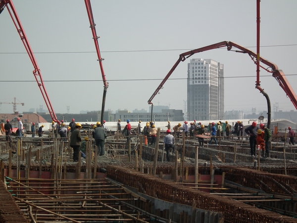 在浇筑过程中,项目部技术员全部上阵,并一直坚持到结束,休息和三餐全部在浇筑现场解决。安全管理人员也全部到场,5名安全员分别把守着高压线四端,确保浇筑安全距离,防止输送泵车的大臂触电。项目部和监理部主要负责人也在场检查、督导浇筑质量和安全。