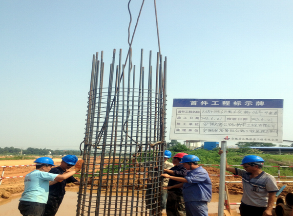 铜南宣08标成功浇筑第一根桩基 发布时间:2013年06月25日 来源:铜南宣08标 发布人: 作者:齐小辉 浏览:2885次 2013年6月21日下午16:18分,经过精心组织,合理安排,铜南宣08标项目部K58+014.6分离立交0#台第一根桩基在漫天的礼花及鞭炮声的伴奏下开始浇灌,于当日17:30顺利完成浇灌。