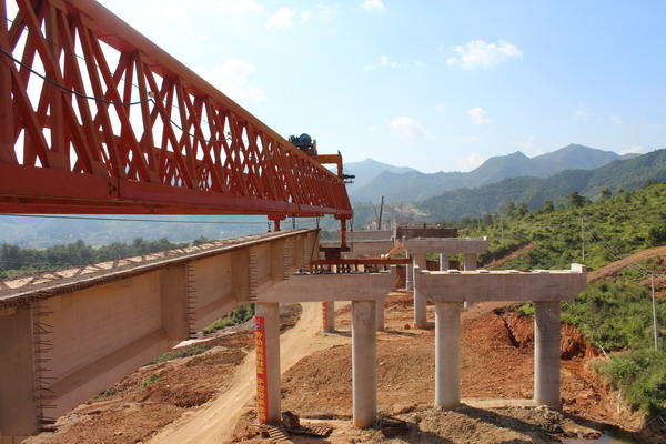 昌宁高速C5标完成龙坊高架第一片40米T梁架设 发布时间:2014年09月18日 来源:昌宁高速C5标 发布人: 作者:王振堂 浏览:2820次 9月18日上午9时18分,昌宁高速公路C5标龙坊高架第一片40米T梁顺利架设成功,标志着作为全线控制性工程的龙坊高架桥进入了上部施工阶段,极大地提振了项目部全体员工和参建队伍的战斗精神。